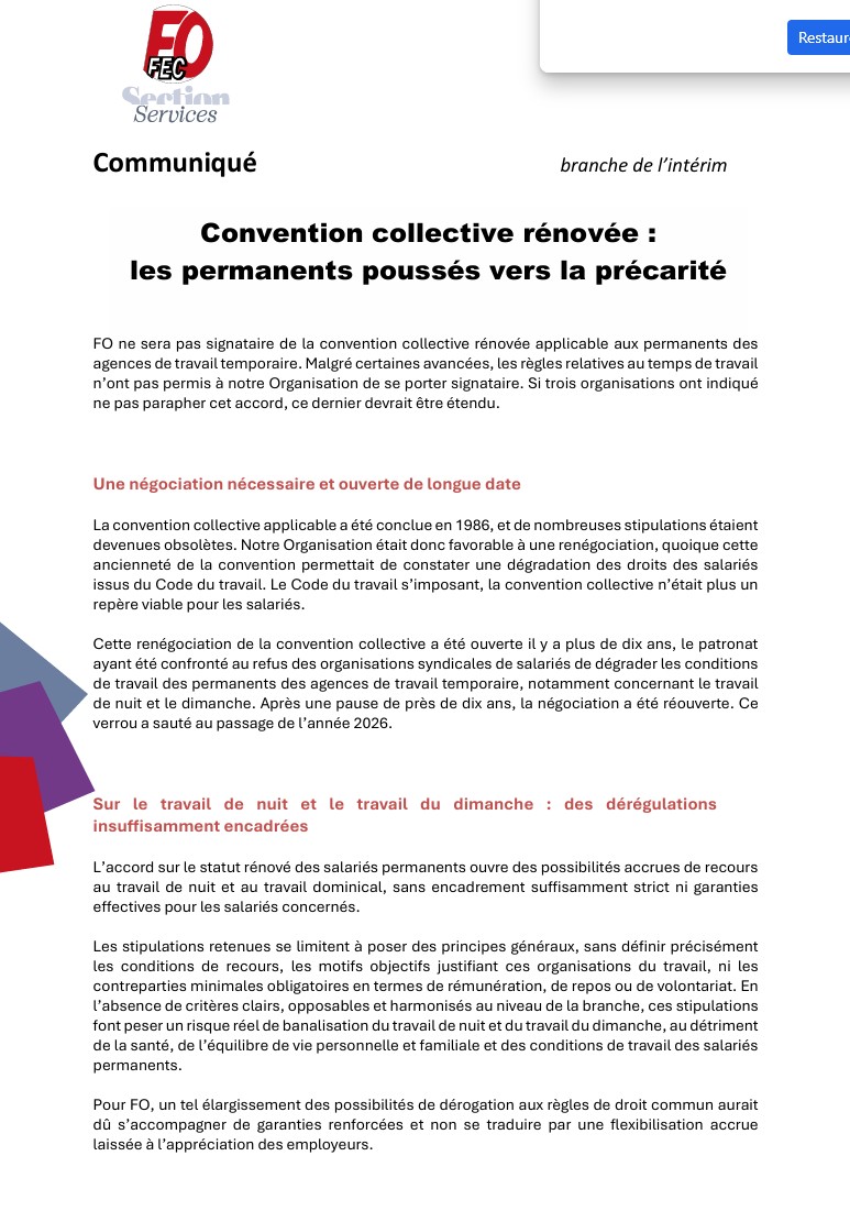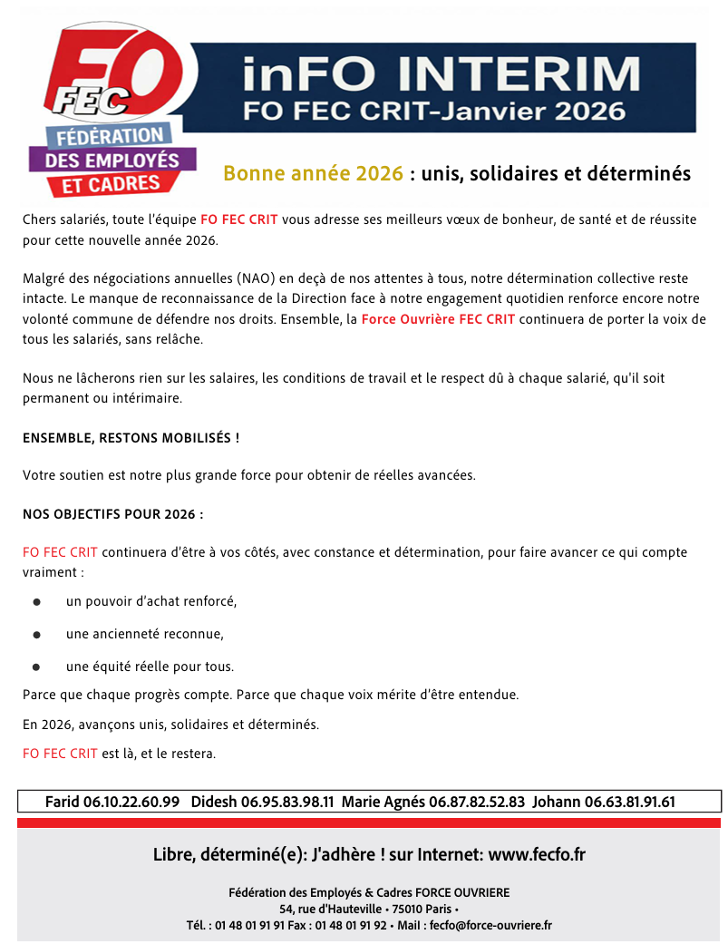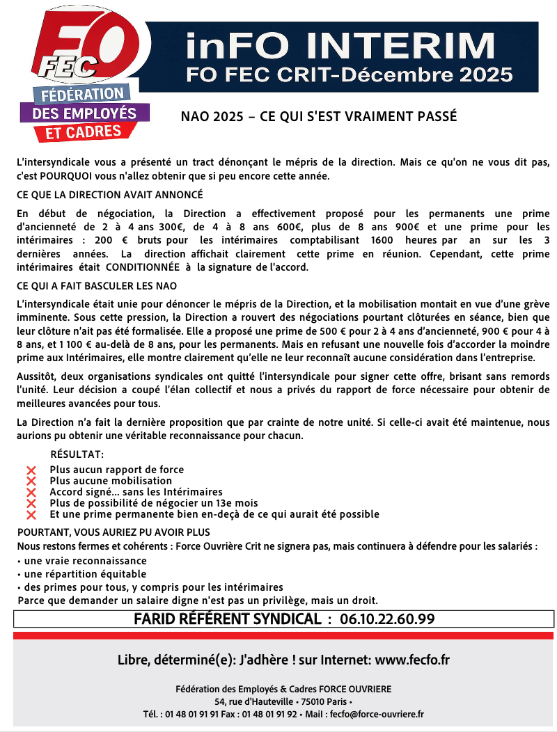 VOTRE SECTION SYNDICALE FORCE OUVRIÈRE