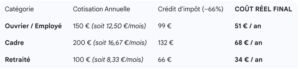 Tarifs de la cotisation annuelle